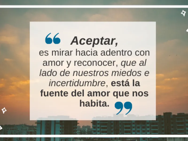 Hoy se hace imposible escapar de nosotros mismos, estamos llamados a vernos a los ojos cada día, a reconocer cuánto hemos vivido y cómo lo hemos hecho. Para aceptar, hay que recorrer el camino del reconocimiento: “solo se ama lo que se conoce”o “el amor es proporcional al conocimiento”, diría un conocido jesuita amigo nuestro.Aceptar, es mirar hacia adentro con amor y reconocer, que al lado de nuestros miedos e incertidumbre está la fuente del amor que nos habita.